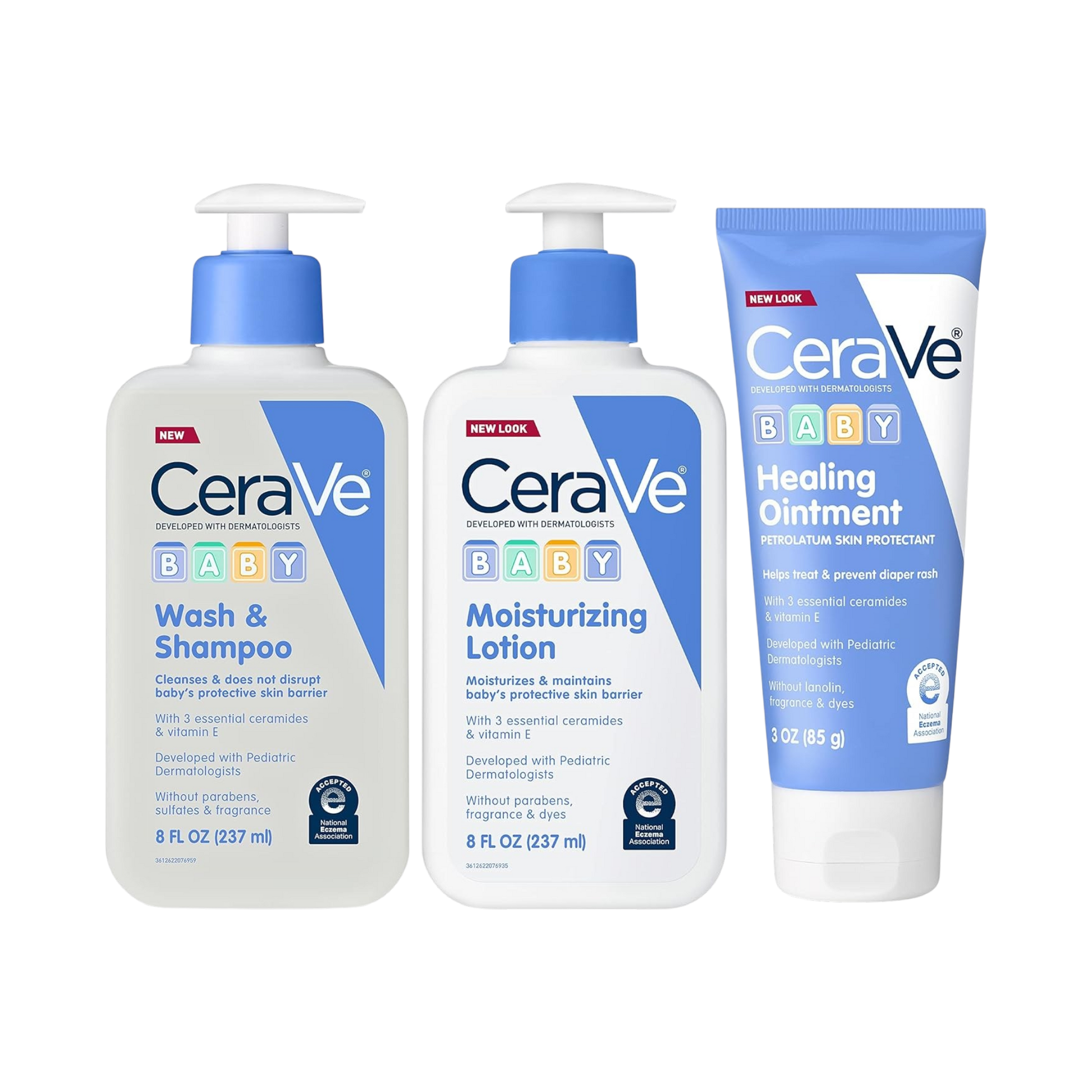CeraVe Baby Bath Set, 237ml Wash & Shampoo + 237ml Moisturizing Lotion + 85g Healing Ointment, Fragrance, Parabens, Phthalates, & Tear Free Baby Bath Essentials