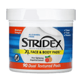 Stridex XL Face & Body Pads offer 67% more surface area per pad for powerful acne-fighting coverage on both face and body. Featuring 2% salicylic acid—the highest strength available without a prescription—these dual-textured pads exfoliate and treat acne-prone skin while helping tighten pores with refreshing grapefruit extract. The smooth side applies medication gently, while the textured side targets deeper cleansing. Alcohol-free and dermatologist-tested, these oversized pads remove dirt, oil, and debris to help clear and prevent breakouts without the sting.