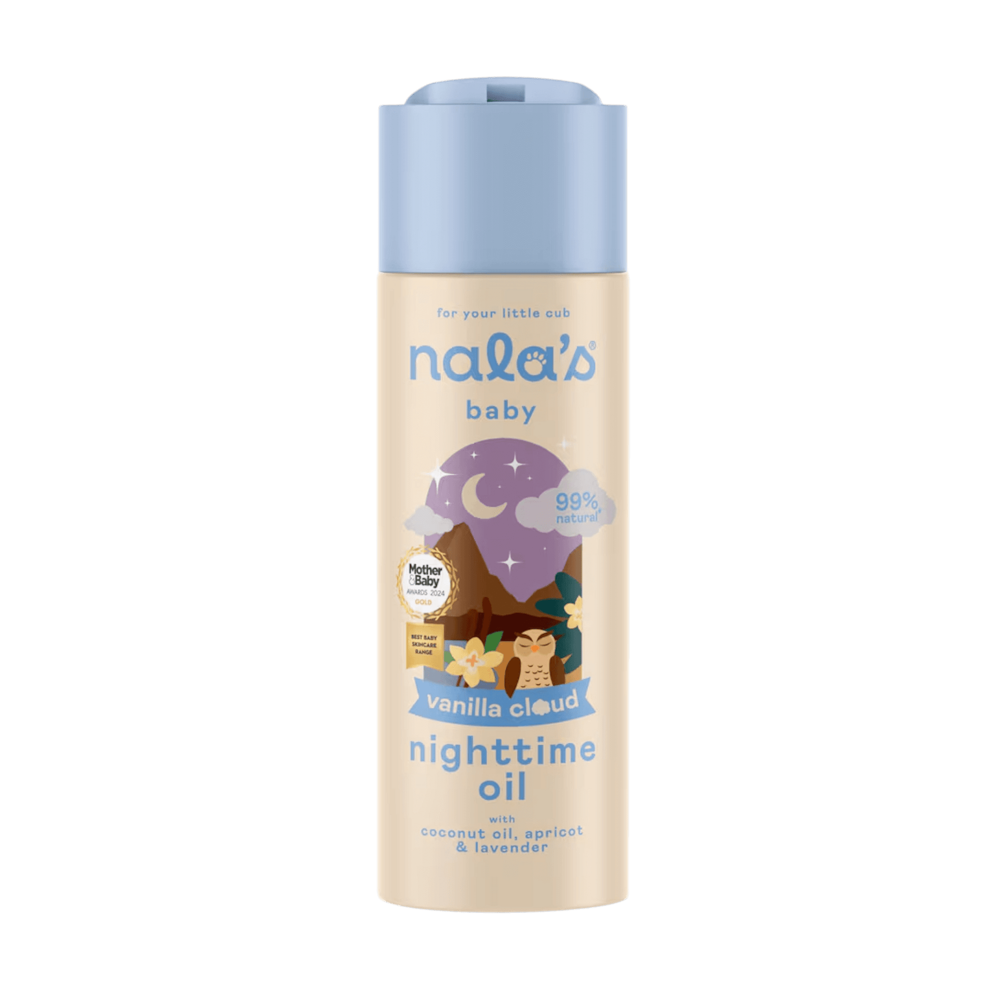 Soothe your little one into a peaceful sleep with Nala’s Baby Nighttime Oil Vani Cloud. This 99% natural, award-winning formula is enriched with sunflower, apricot kernel, olive, and coconut oils to deeply nourish and soften baby’s skin. Infused with calming lavender and the comforting Vani Cloud scent, this gentle massage oil is perfect for bedtime bonding—leaving skin silky smooth and ready for dreamtime.